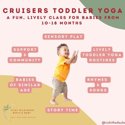 A lively baby yoga class, incorporating rhyme, story time and sensory play. Suitable from 16 weeks to crawling.
